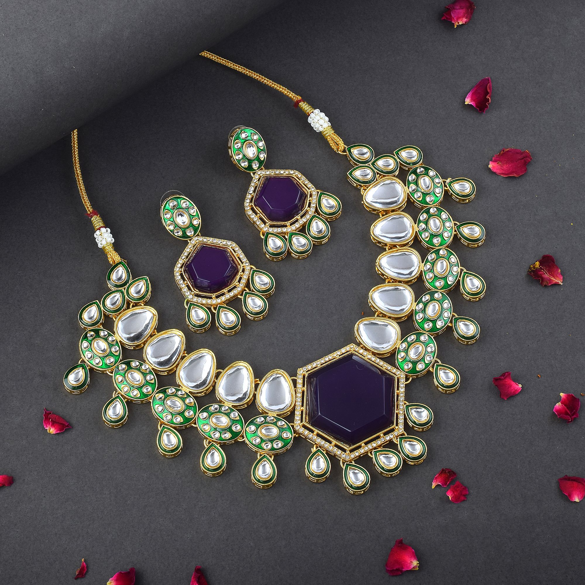 Gorgeous Purple Color Kundan Necklace Set with Premium Traditional Indian Craftsmanship