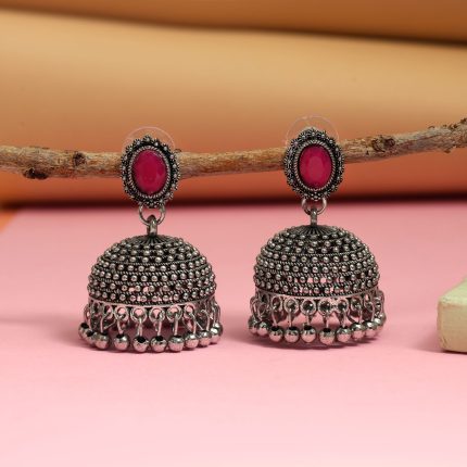 Red Color Oxidised Earrings With Ethnic Bohemian Touch And Handcrafted Style – Red