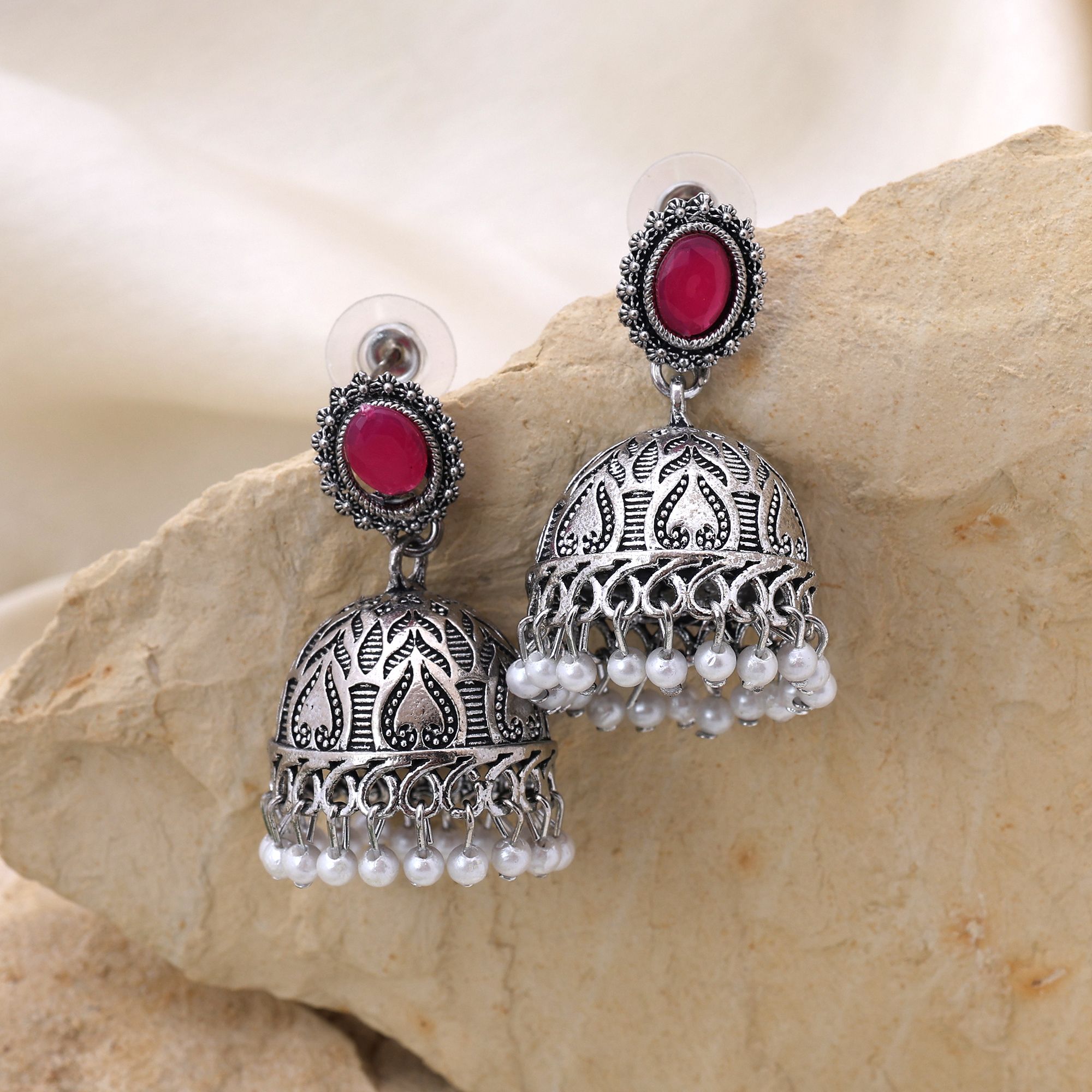 Stylish Rani Color Oxidised Earrings Perfect For Weddings, Parties, And Womenu2019S Ethnic Styling Jewelry – Rani
