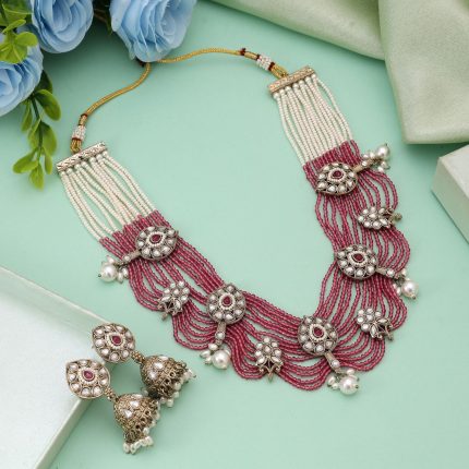 Magenta Color Kundan Necklace Set With Vibrant Royal Festive Finish