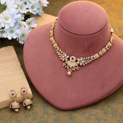 Rani & Green Color Matte Gold Necklace Set Offering Regal Charm And Heritage Appeal